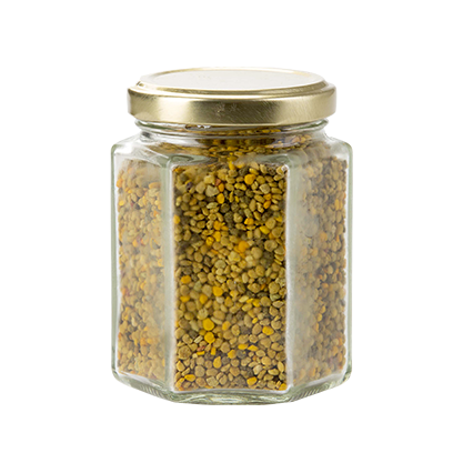 Jede Pflanzenart hat einen eigenen Pollen, der sich in Farbe und Gestalt von den anderen unterscheidet. Die Bienen ernten ihn mit Hilfe ihres Haarkleides und formen ihn zu den sogenannten „Pollenhöschen“, welche an den Hinterbeinen anhaften. Blütenpollen gilt aufgrund seiner hochwertigen Inhaltsstoffe als gesunde Nahrungsergänzung für den Menschen und beinhaltet zB Vitamine, Mineralstoffe, Spurenelemente sowie sekundäre Pflanzenstoffe.